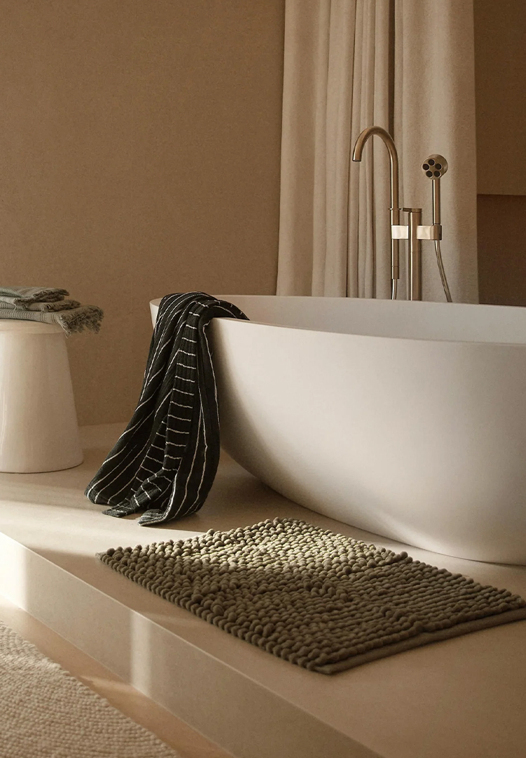 Im Badezimmer sorgen Heimtextilien wie Handtücher, Badetücher, Badematten und Teppiche für Komfort und ein wohnliches Ambiente. Sie verwandeln eine sterile Nasszelle in einen gemütlichen Rückzugsort. Ohne Textilien wäre das Badezimmer kalt und unpersönlich – mit ihnen wird es zum Wohlfühlort.
