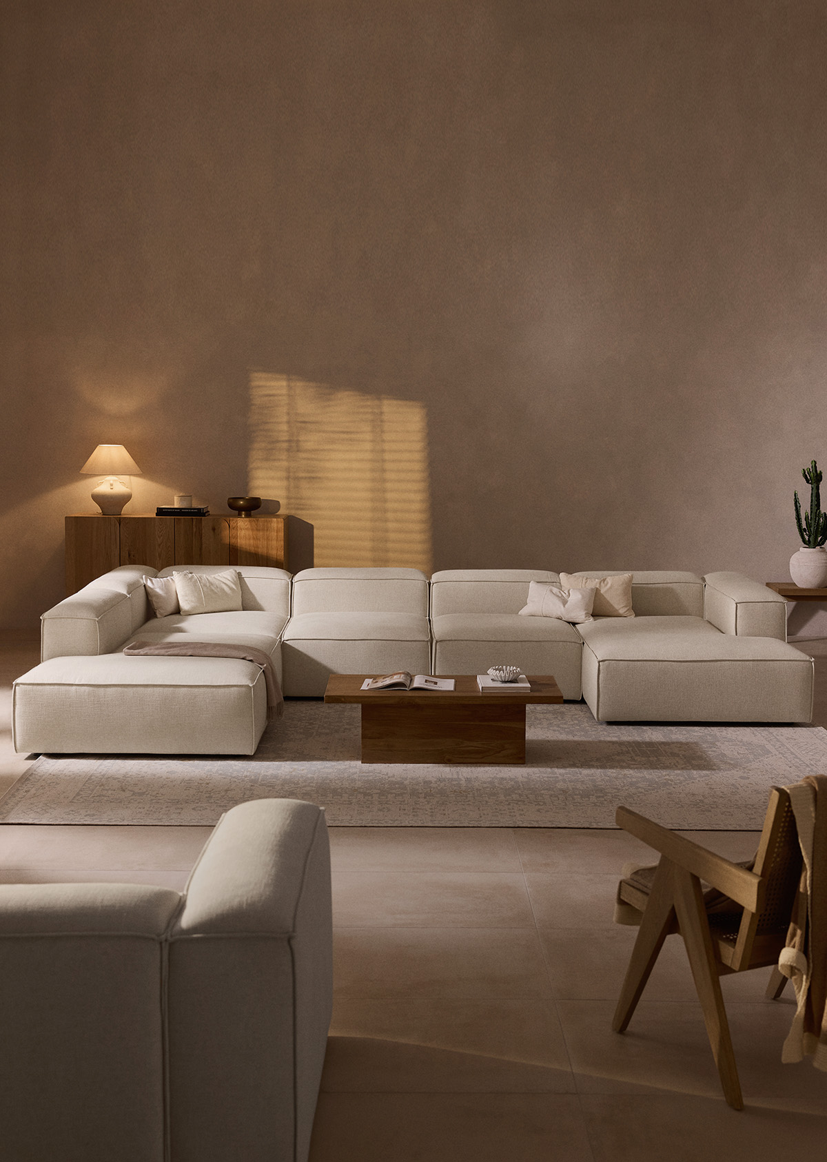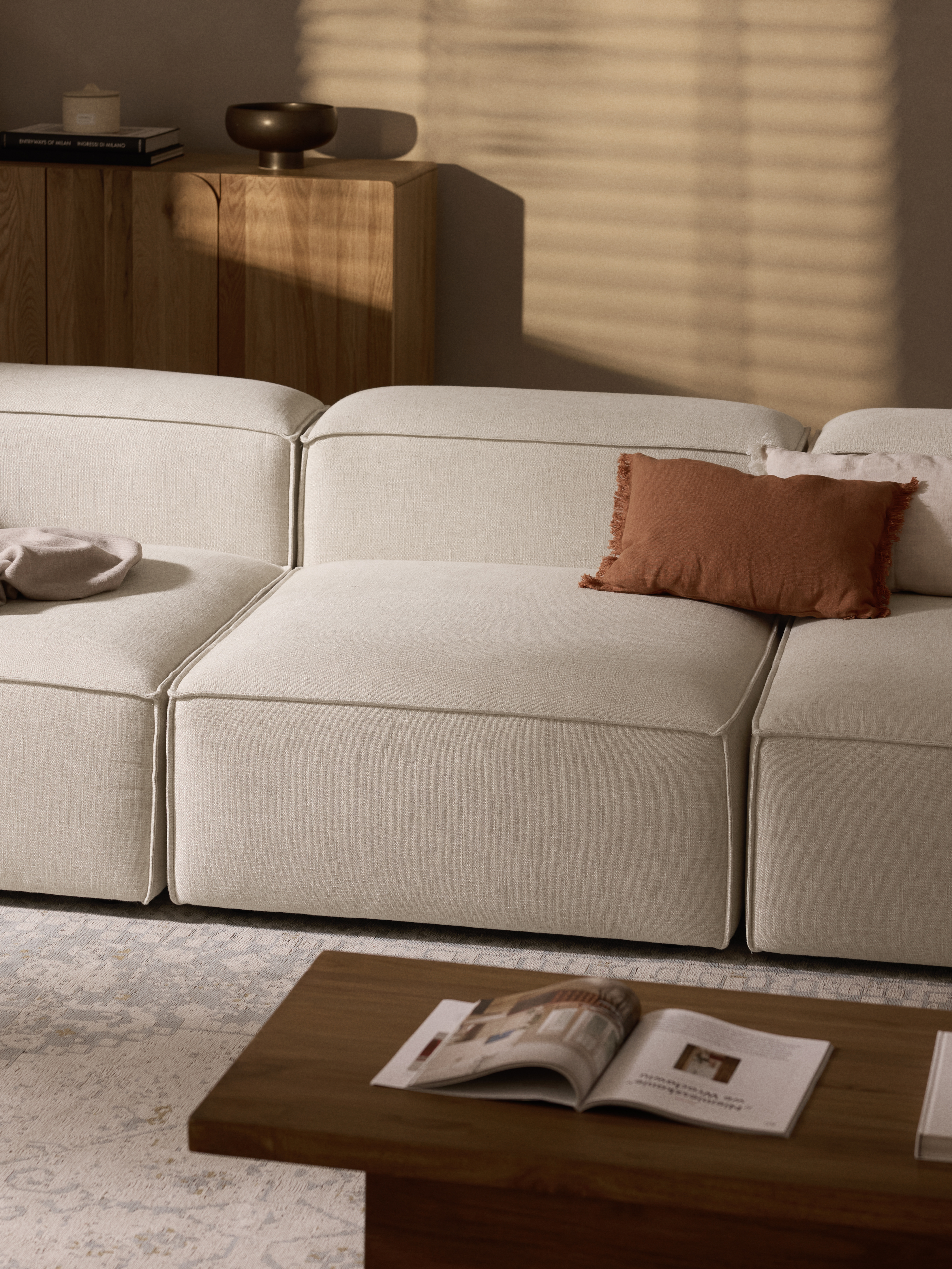 Mit seiner tiefen Sitzfläche lädt LENNON zum echten Loungen ein – für Filmabende, Wochenend-Naps oder entspannte Gespräche. Stabile, formbeständige Polster sorgen für langanhaltenden Komfort, während die moderne, kubische Form eine ruhige, einladende Ästhetik schafft – ideal für lebendige Interiors.
