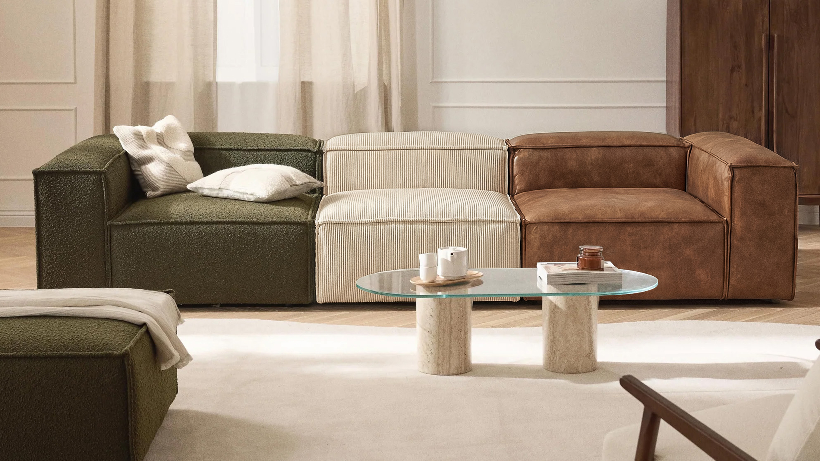 Von cosy Bouclé über pflegeleichte Webstoffe bis hin zu modernem Cord. Die Farbpalette reicht von sanften Neutrals bis hin zu kuratierten Akzentfarben. Für jedes Bedürfnis die perfekte Textur.