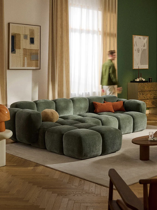 SOFIA bringt Ruhe in offene Grundrisse und formt Räume durch seine klare, sanft abgerundete Silhouette. Die organische Form wirkt unaufdringlich, aber präsent: Sie strukturiert Wohnflächen, schafft Balance und bringt eine moderne Wärme in jede Umgebung. Ein Sofa, das nicht dominiert, sondern kultiviert.