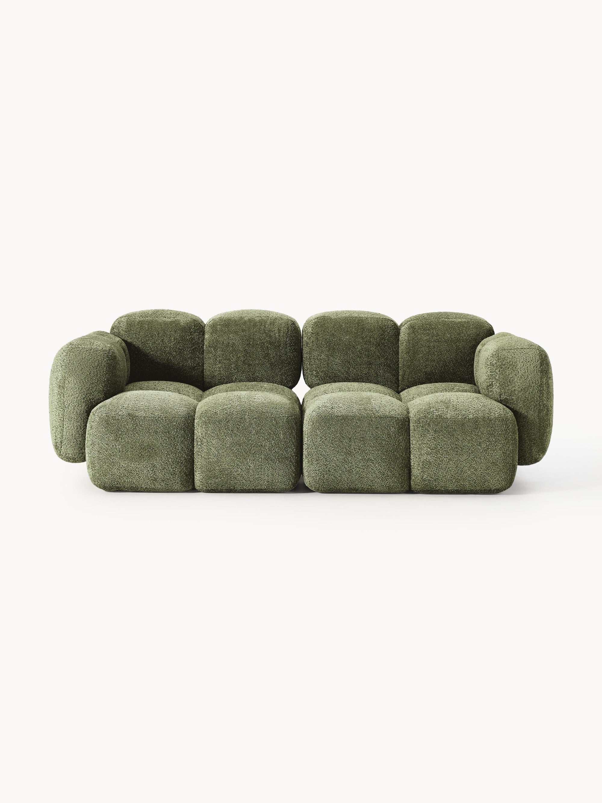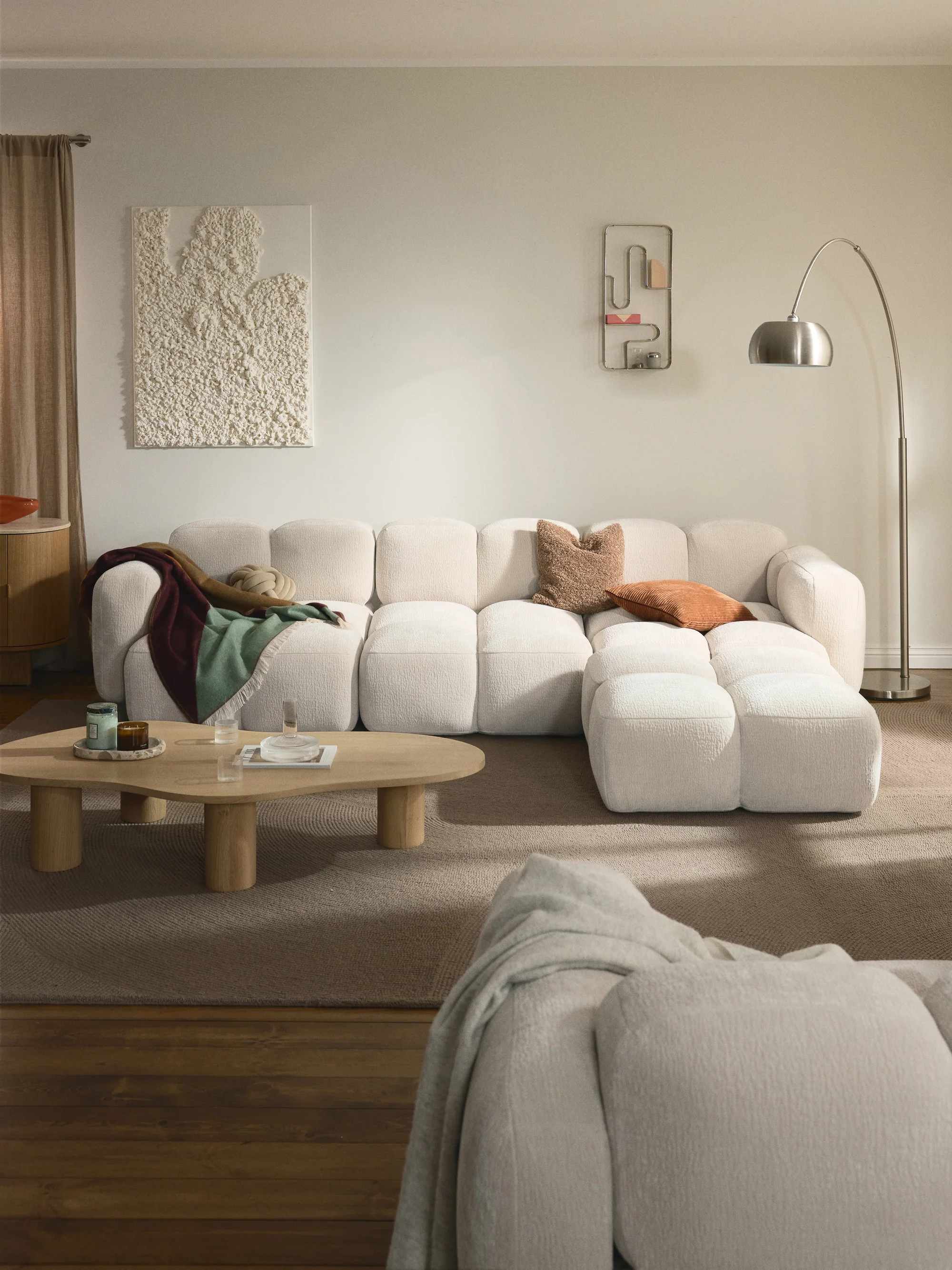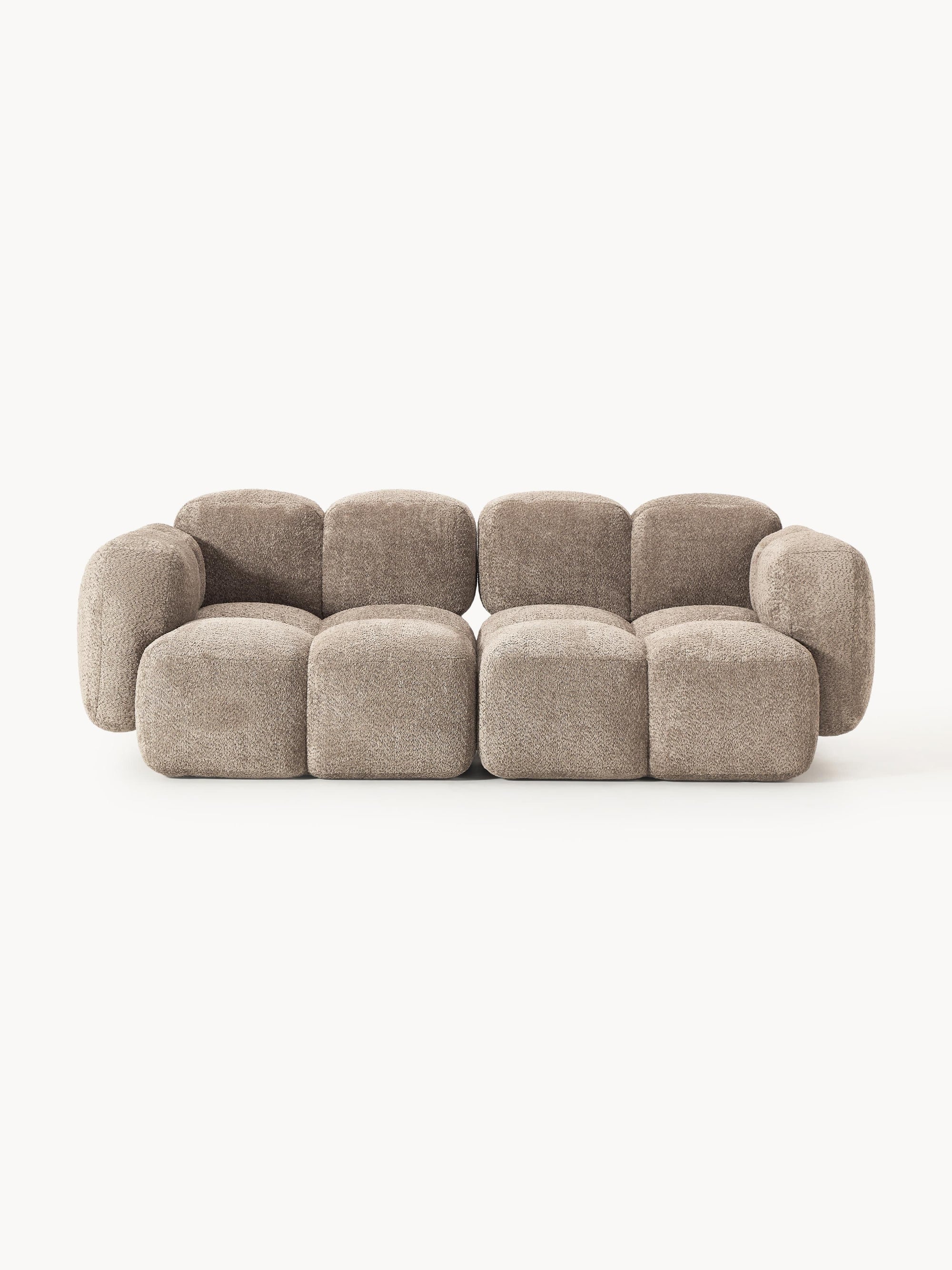 Mit seiner markanten, kubischen Form setzt Tayla ein Design-Statement, das Räume definiert. Weiche Texturen brechen die klare Geometrie und verleihen dem Sofa eine moderne, fast skulpturale Präsenz.