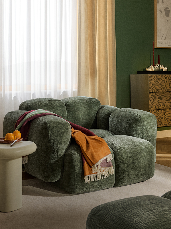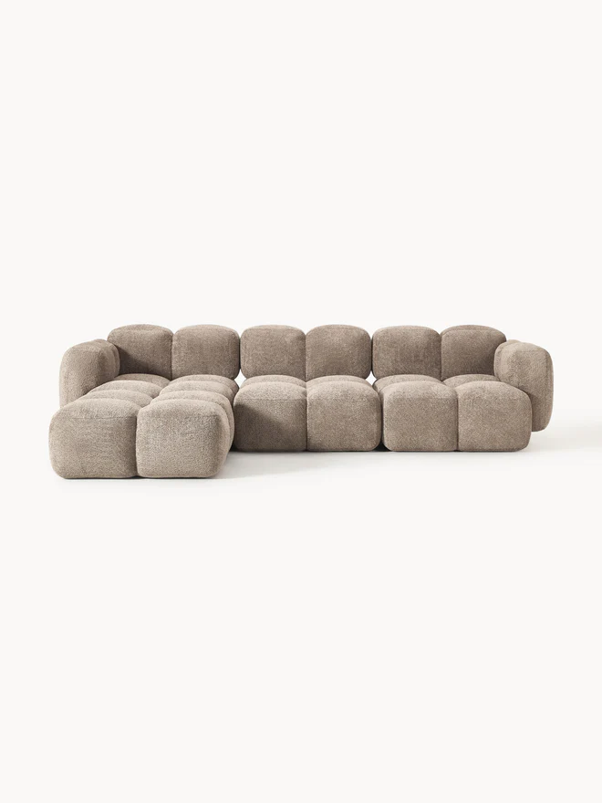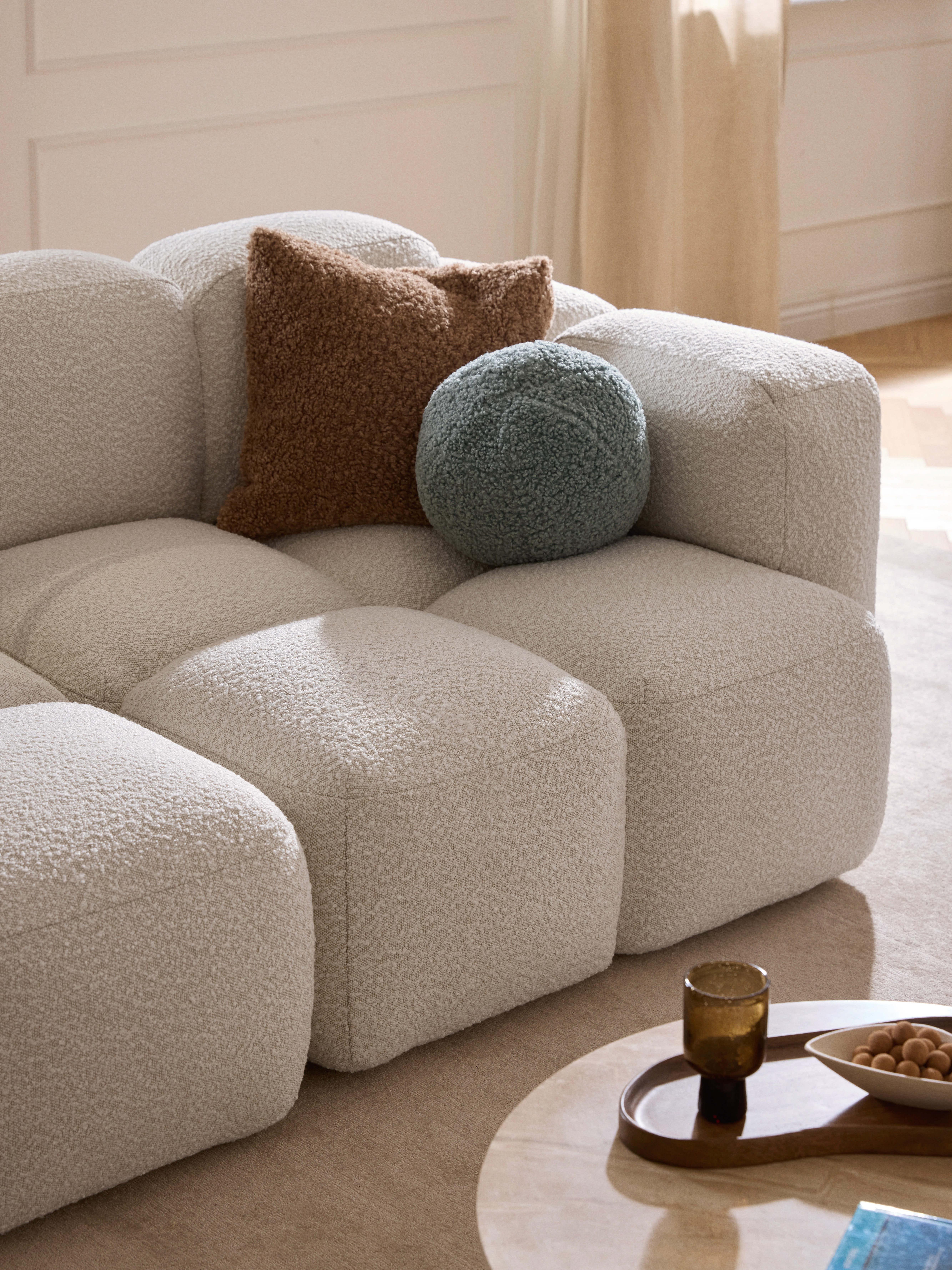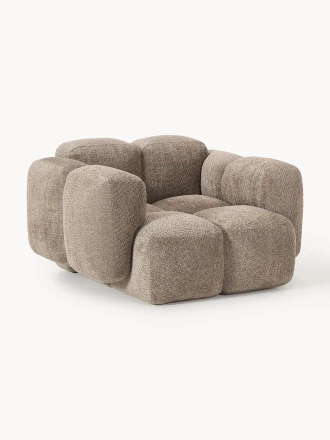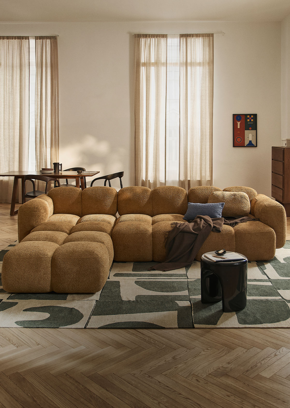 Mit seiner markanten, kubischen Form setzt Tayla ein Design-Statement, das Räume definiert. Weiche Texturen brechen die klare Geometrie und verleihen dem Sofa eine moderne, fast skulpturale Präsenz.