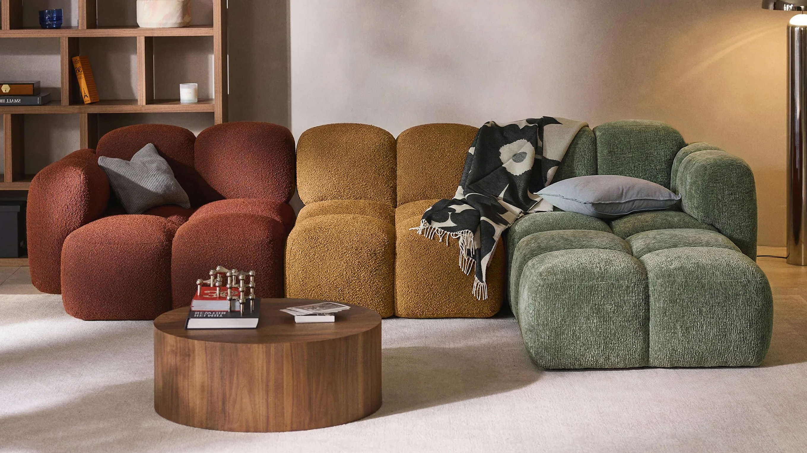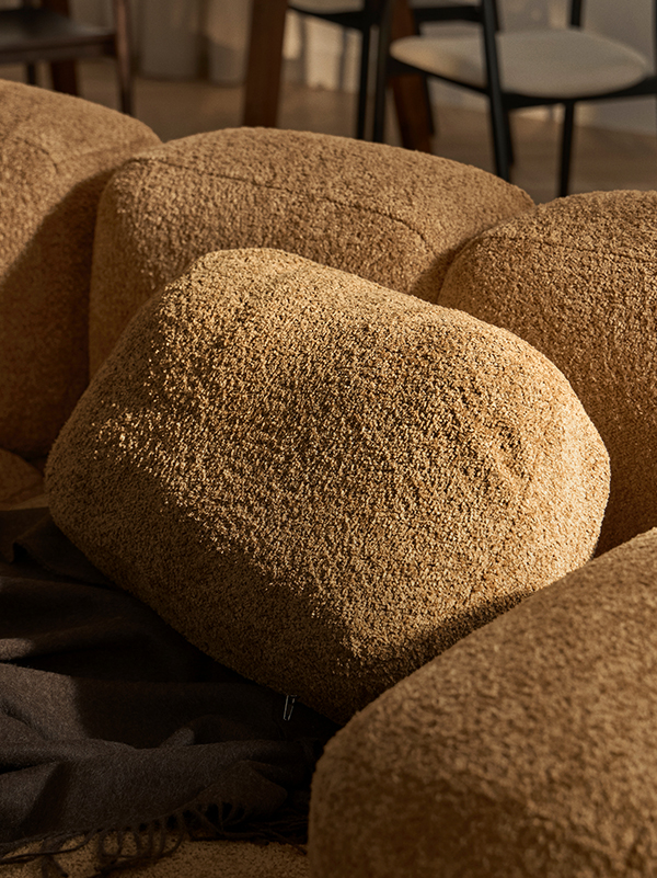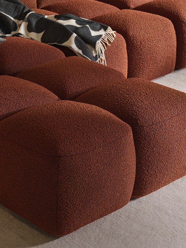 Von weichem Bouclé bis hin zu strukturierten Webstoffen bieten die Materialien haptische Tiefe und ein luxuriöses Lounge-Gefühl. Die Farbwelten reichen von sanften Neutraltönen bis zu warmen, intensiven Akzenten – perfekt für Interiors, die bewusst auf Design setzen.